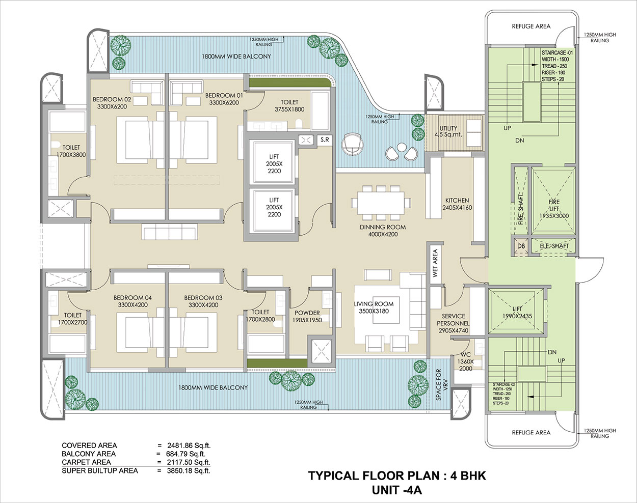 Ganga Anantam 85 introduces three iconic towers structured in a quad-core design, ensuring rock-solid stability and architectural elegance. Spread across a prime site of 5.3 acres, these towers are a testament to luxury living in Sector 85, Gurugram. They reach unprecedented heights and are the tallest buildings in the locality. They are elevated from 55 to 57 floors, offering panoramic views and a sense of grandeur. Each tower at Ganga Anantam 85 is equipped with eight elevators, proving comfort and accessibility. Two of these elevators are dedicated to each apartment, providing direct access and privacy. Additionally, two service elevators further enhance the functionality, ensuring seamless maintenance and access to services.